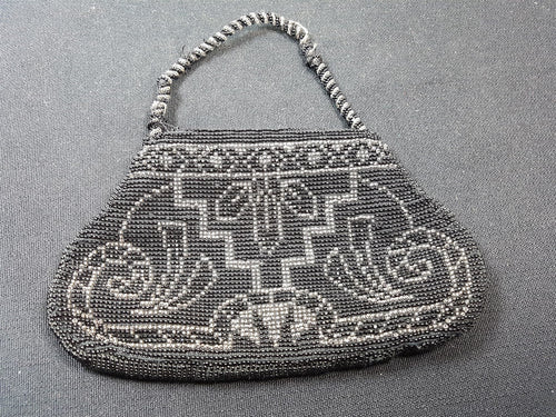 Vintage Beaded Hand Bag Purse Evening Formal Black and Silver Beads 1920's - 1930's