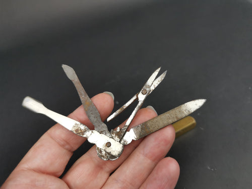 Vintage Folding Manicure Nail Tools Set in Original Brass Metal Case Early 1900's Original