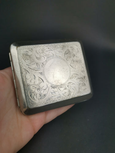 Vintage Silver Plated Metal Cigarette Case with Ornate Designs on Front and Back 1920's - 1930's Original