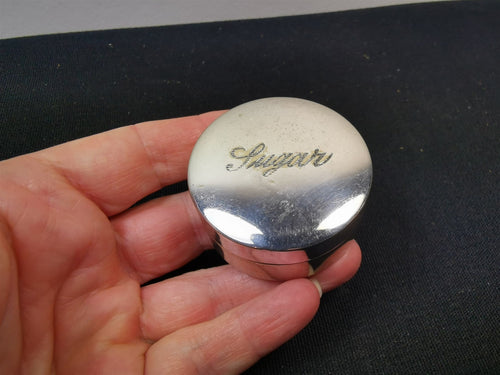 Antique Sugar Box Travel Traveling Storage Container Silver Plated EPNS Early 1900's Engraved Sugar on Top Lid